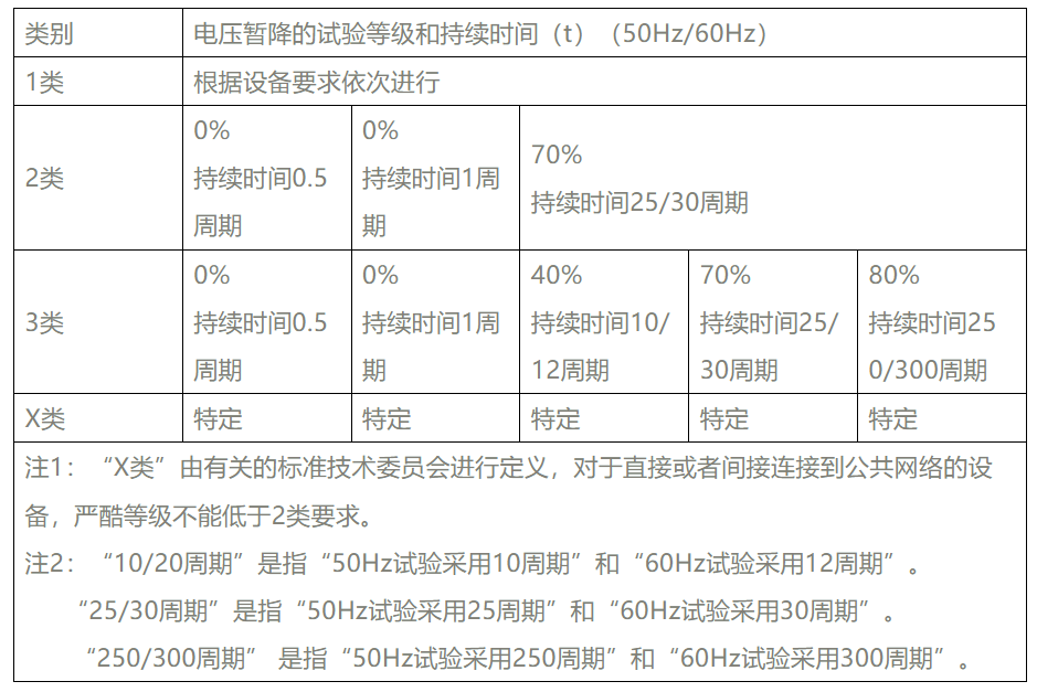 注1:“X類”由有關的標準技術委員會進行定義,對于直接或者間接連接到公共網絡的設備,嚴酷等級不能低于2類要求。